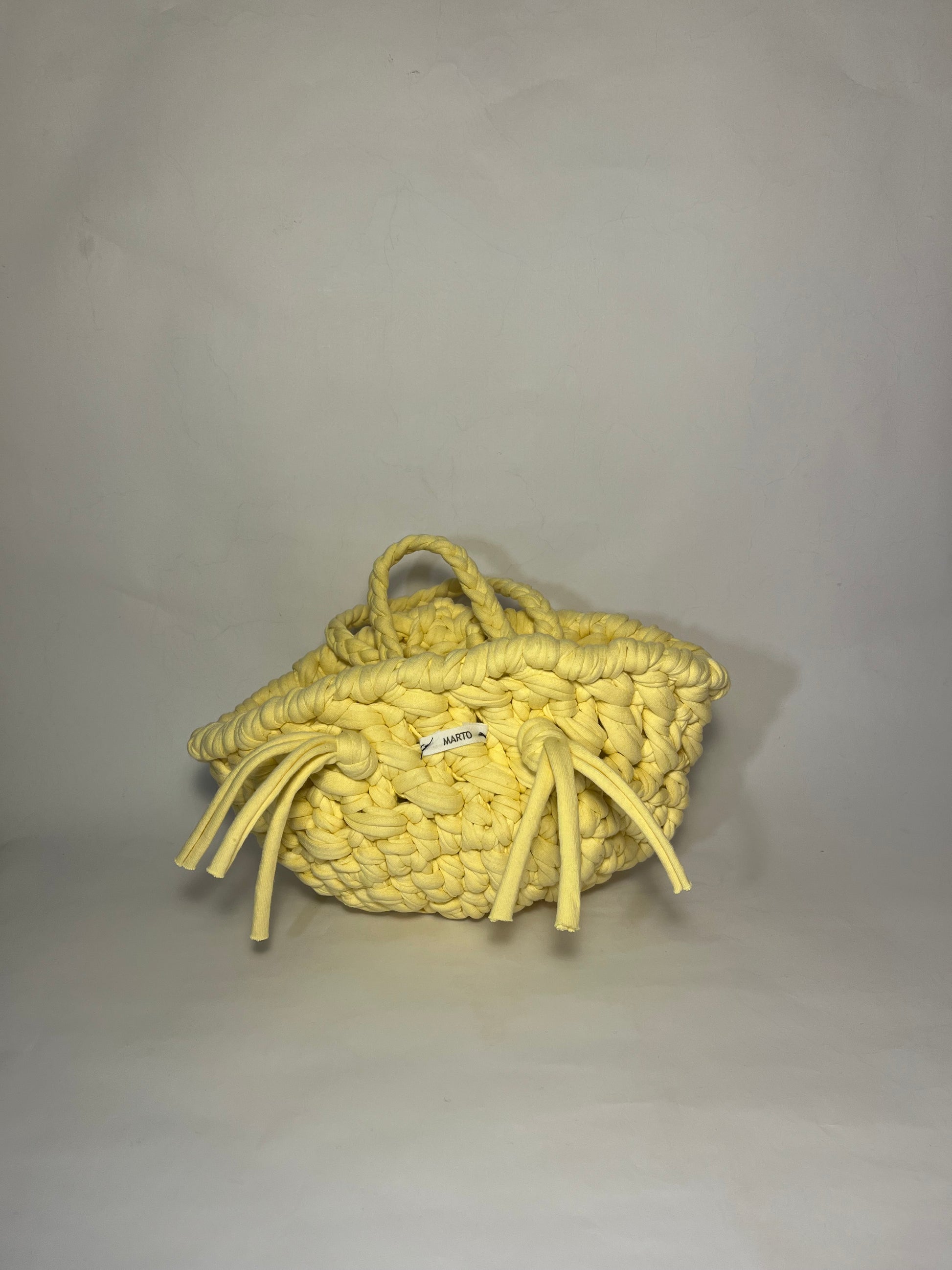 Hecho de hoja de palma y trapillo, todo hecho artesanalmente.
